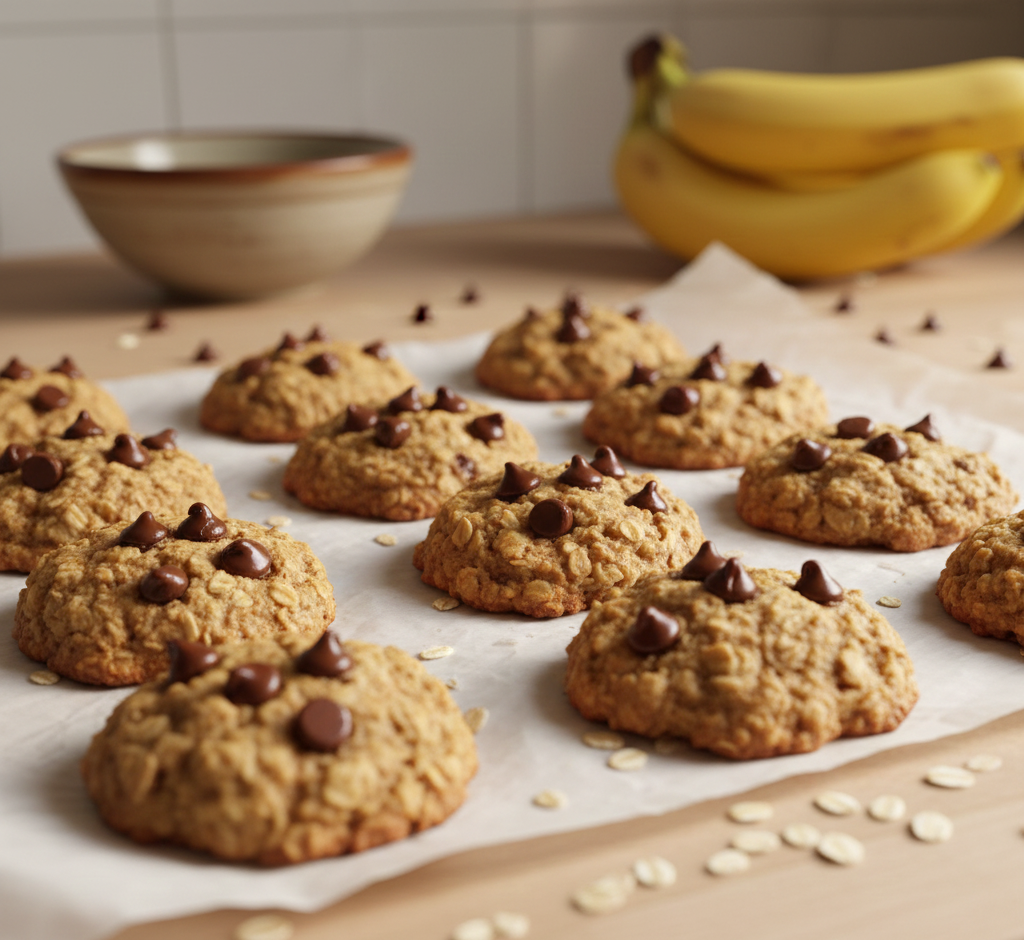 These cookies are nutritious and tender and created using three components. You crush bananas. You combine them with rolled oats. For added taste you may include some chocolate chips before baking.