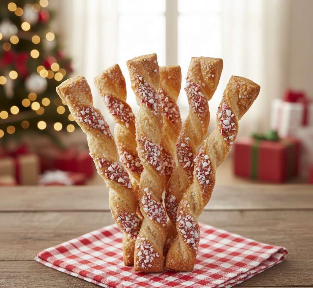 These are crispy sticks infused with a refreshing peppermint taste. You utilize -made pastry dough from the store. They are topped with crushed candy canes and sugar. They make a treat, for dipping into hot cocoa.