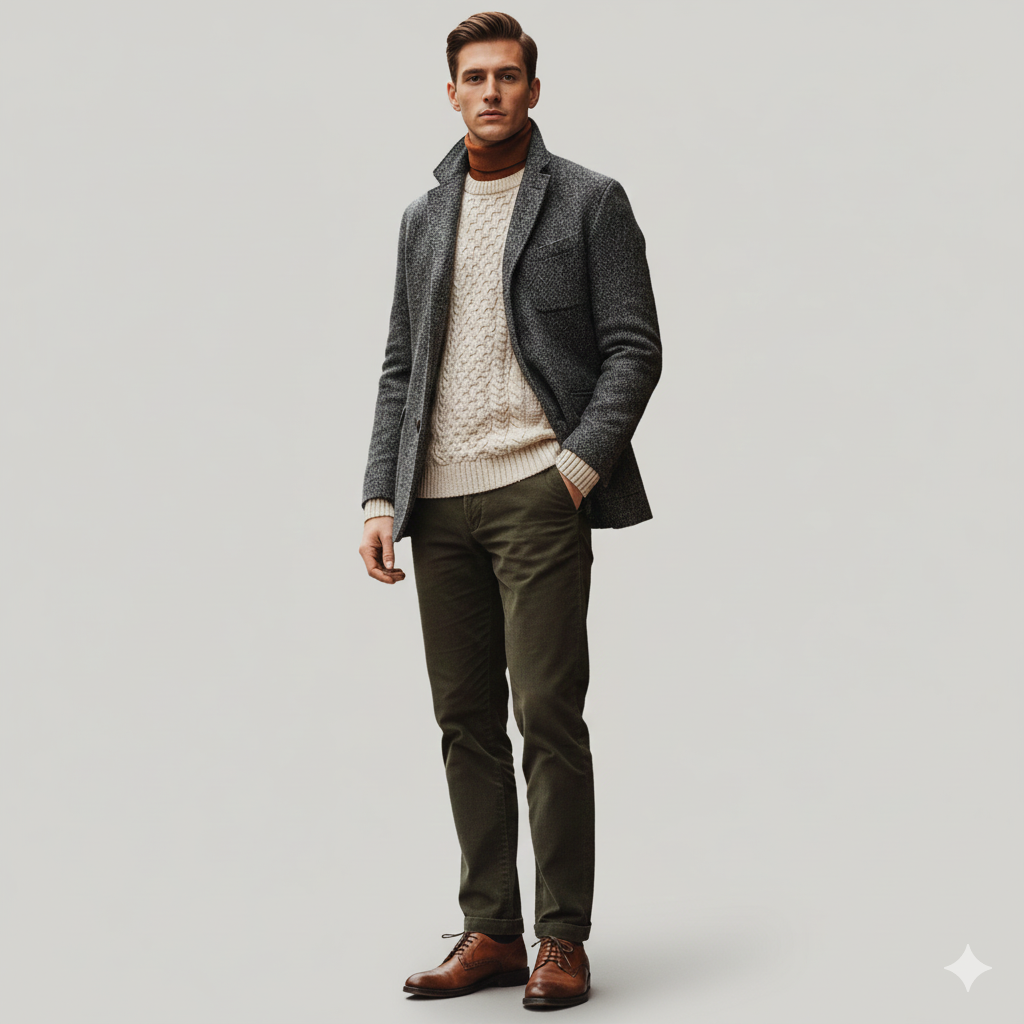 Layering in a refined and strategic way can help you balance your silhouette, and at the same time, it gives the look you have efficiency and class. Depth through a chosen proper base layer and a light pullover or a jacket will increase your overall presence.