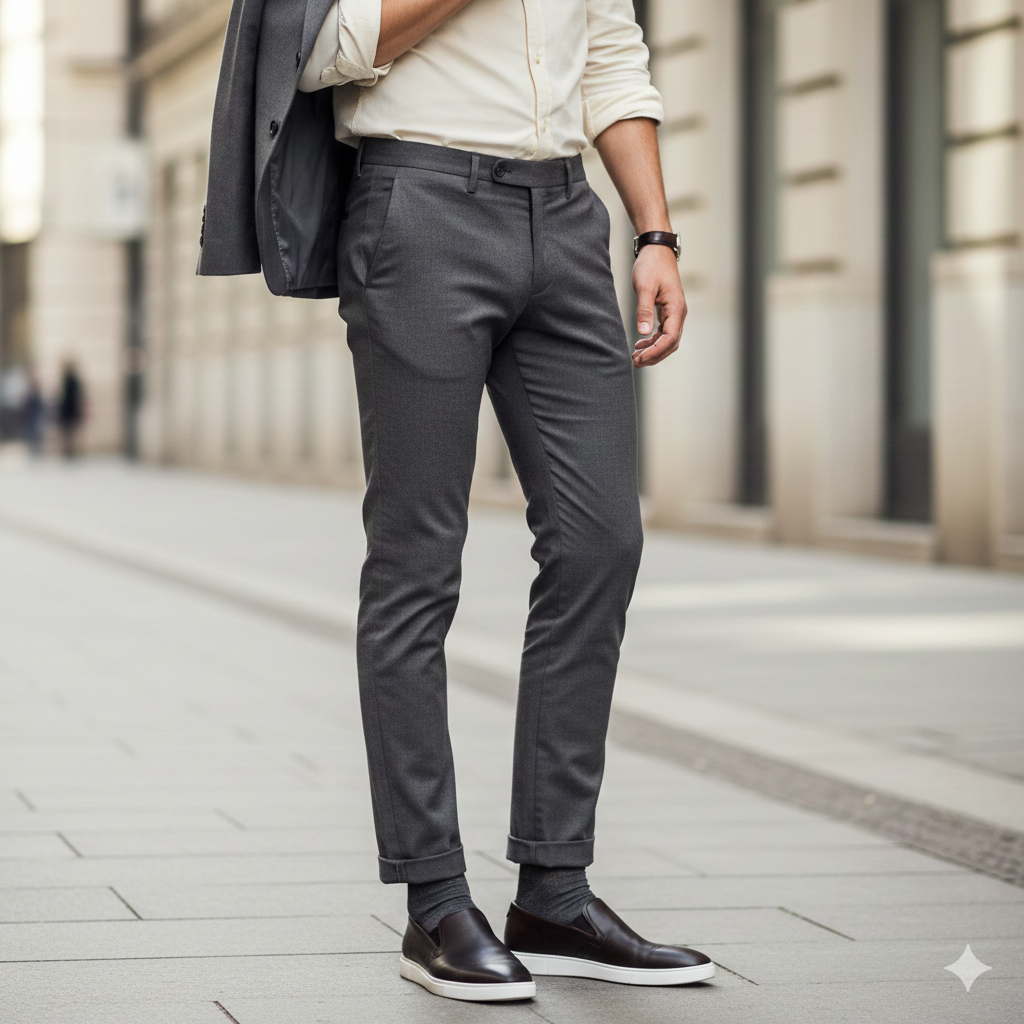 Usually, slim-straight or tailored styles bring the best result of the balance, giving your legs definition without being too tight or too loose. The proper cut keeps the lines clean while forming a naturally proportional silhouette.