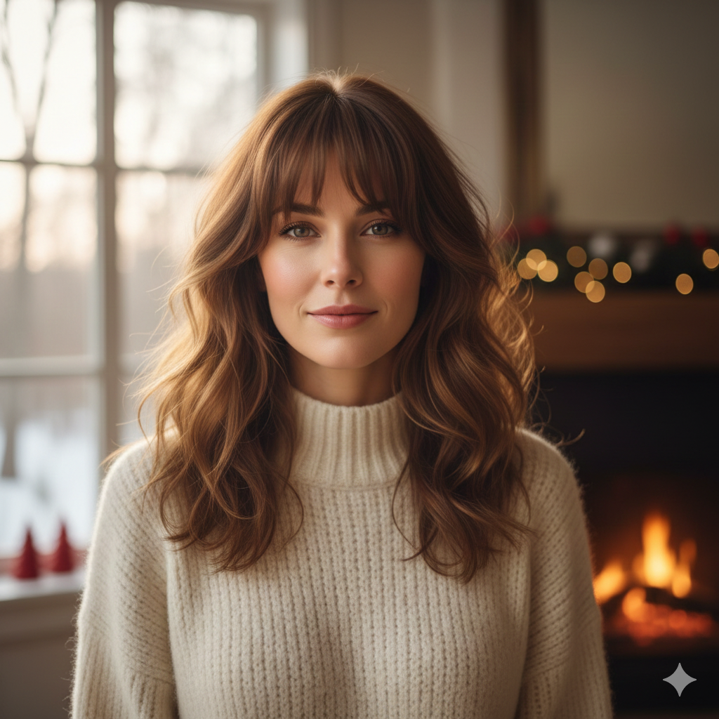 Curtain bangs remain trendy since they softly outline the face and are simple to handle during winter conditions. They suit wavy hair and provide a delicate look with minimal effort. This style is favored by many as it appears fresh and airy.