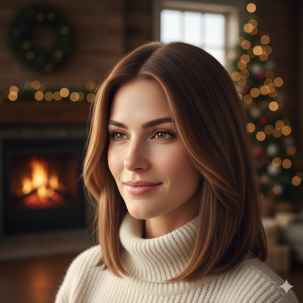 Gentle highlights framing the face produce a radiance in winter. They illuminate your features without altering your shade. This style is ideal, for those seeking a distinct refresh. It brings dimension and brightness to every hairdo.