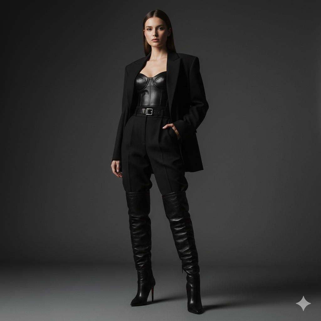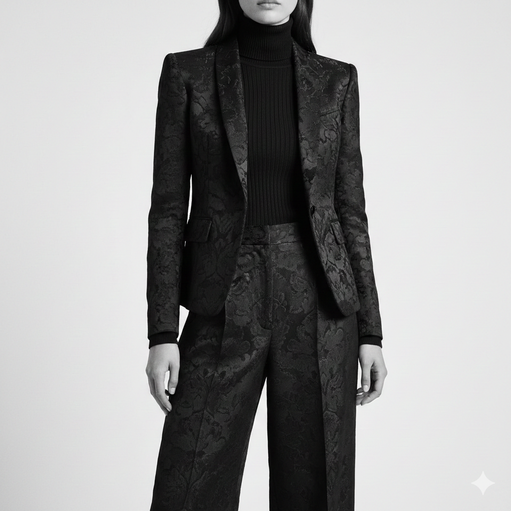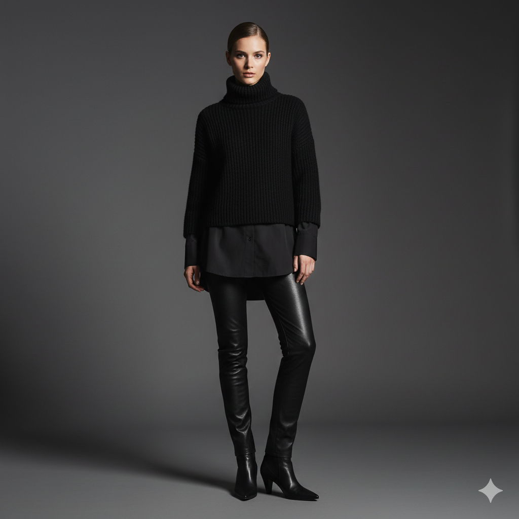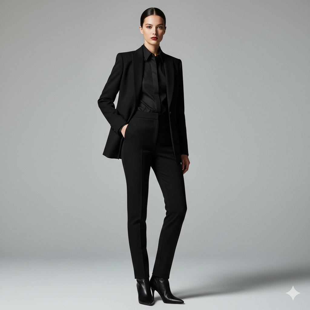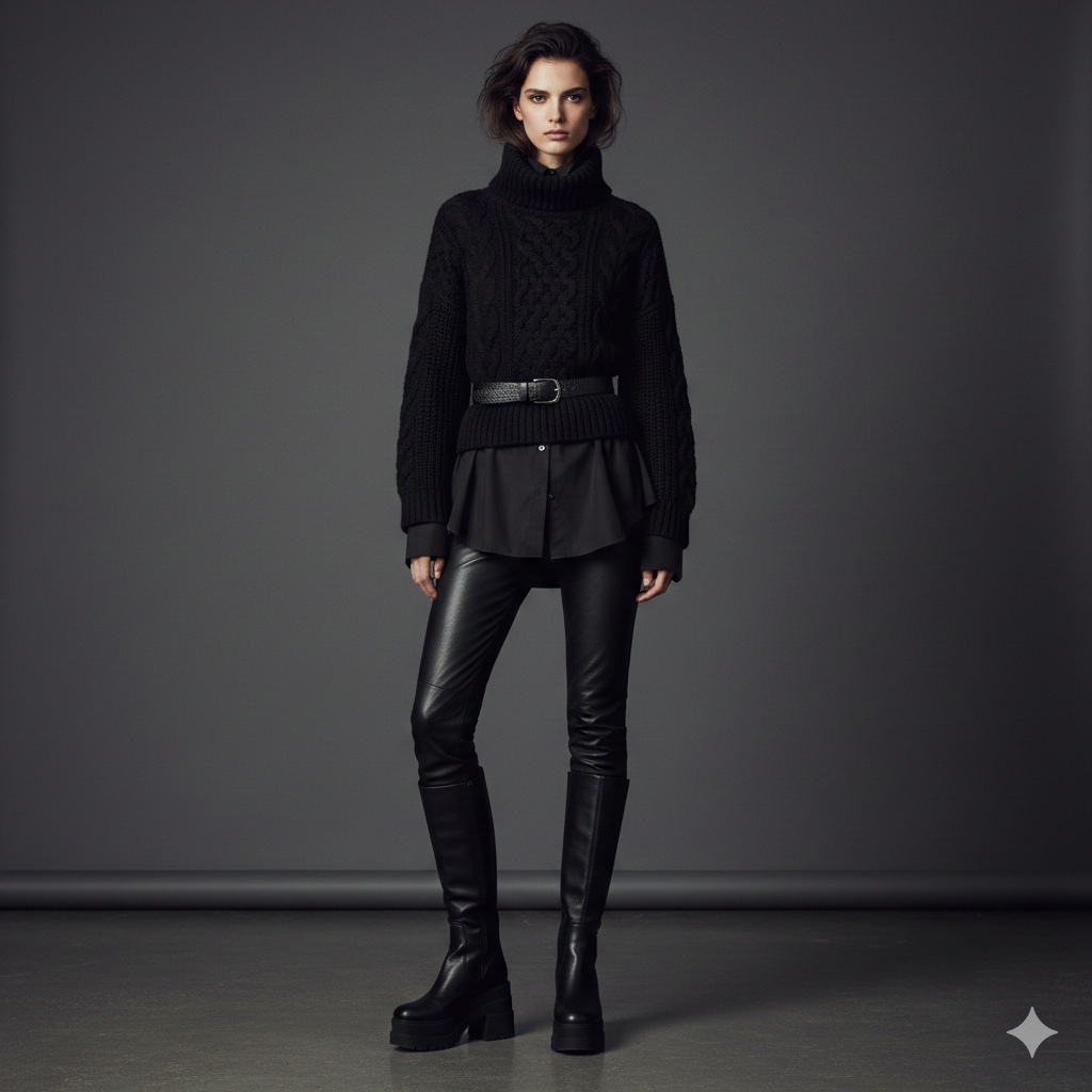 Other tiny elements, such as tonal stripes or silent embossing may provide some faint rhythm to the outfit and still maintain a neutral one. Because of these subtle clues, there is characterisation without sacrificing the all-black promise.