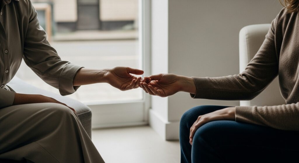 Because of what happened when help arrived, that person gave time and stayed close to another, showing that acts of care tend to keep moving instead of ending alone.
