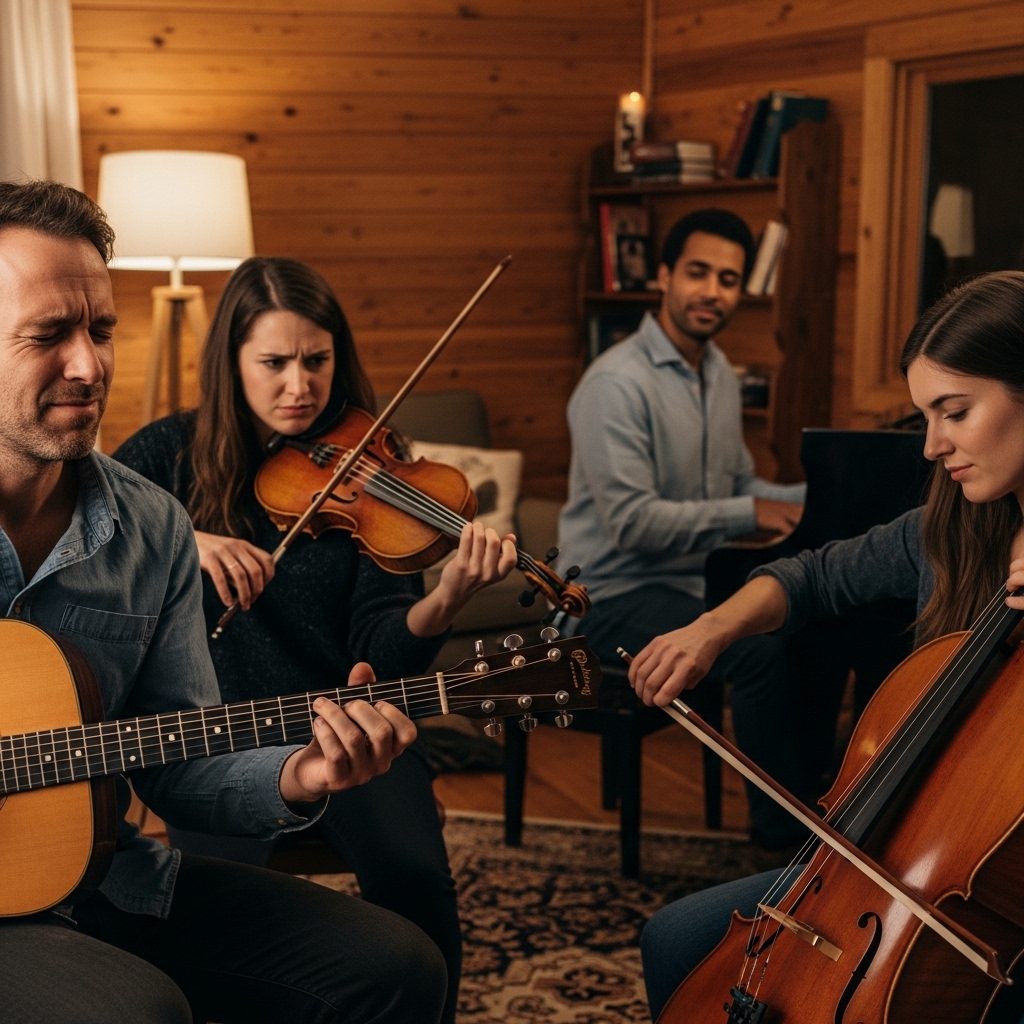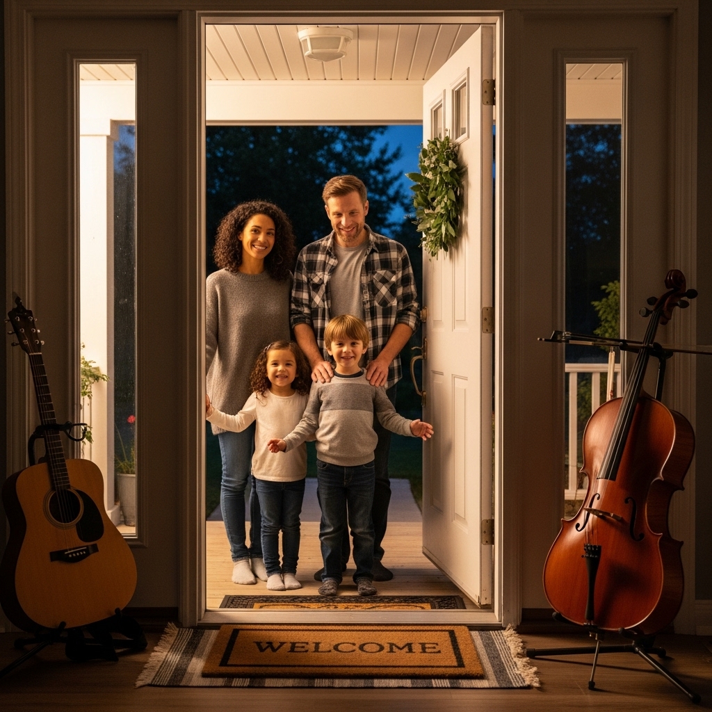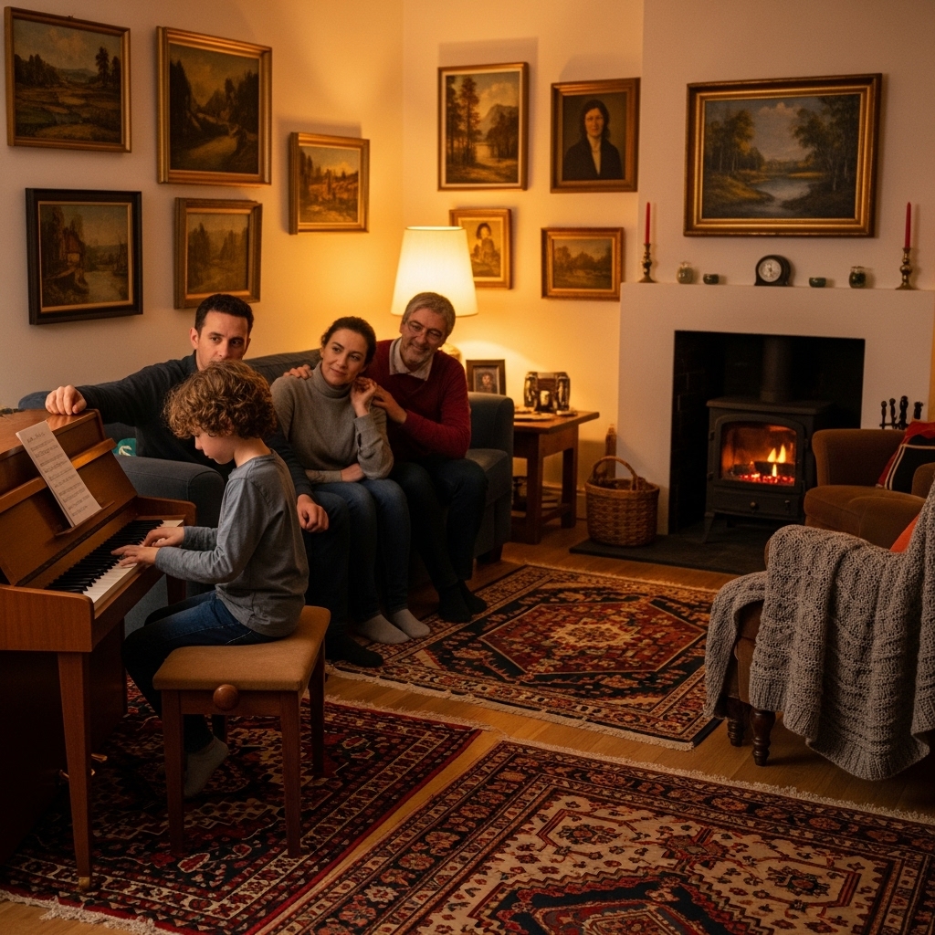 A sudden quiet shifted when the living room opened up like a hidden studio. Melodies flowed through it, smooth and unforced, settling into the sound of everyday walls. Each note landed softly, shaping a space where warmth and hope quietly overlapped.