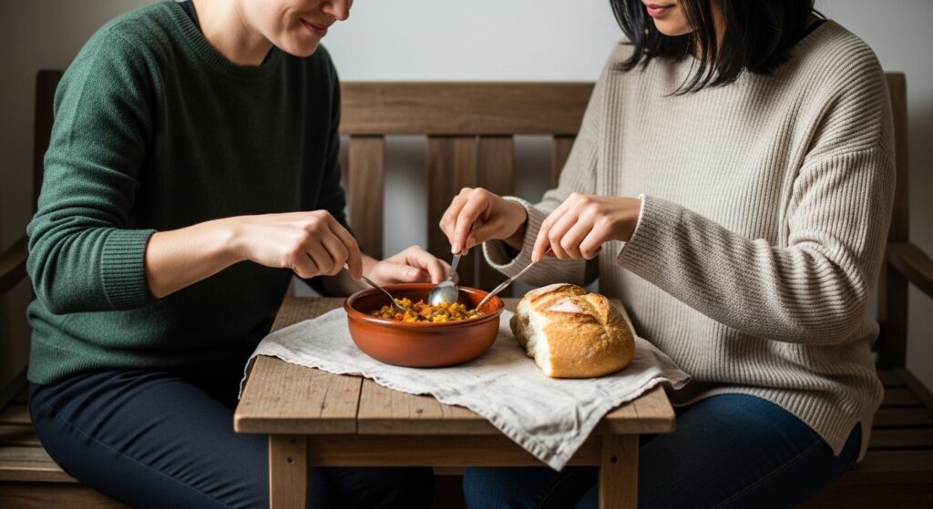 This bond between them became natural and easy as they shared the meal that they had just made. Food was not just a sustenance, but a medium that helped the two strangers to be closer to each other.