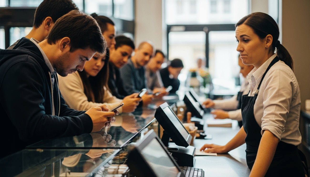 Divided attention starts adding up little delays that are particularly harmful at the busiest times of the day when time and clarity are the most important. The employees complain that any distraction during the interaction of a few seconds may cause longer queues and add more stress to the counter.