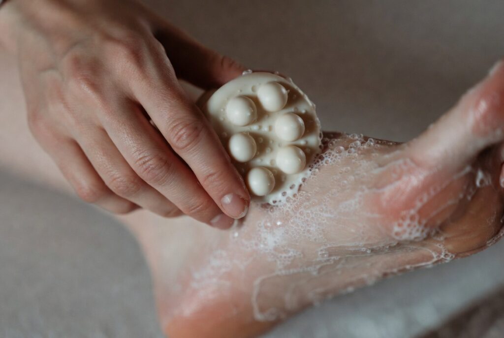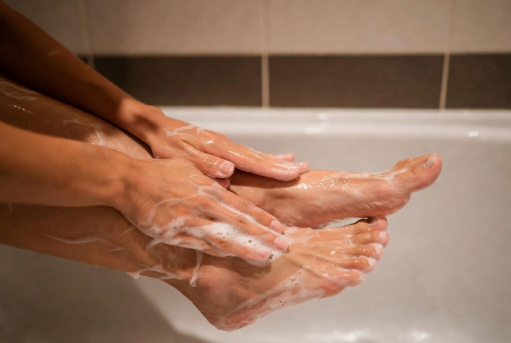 Clean feet with water and soap every day