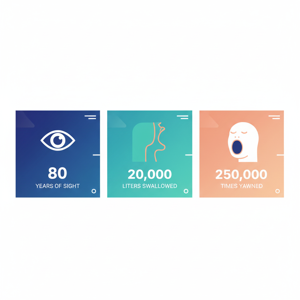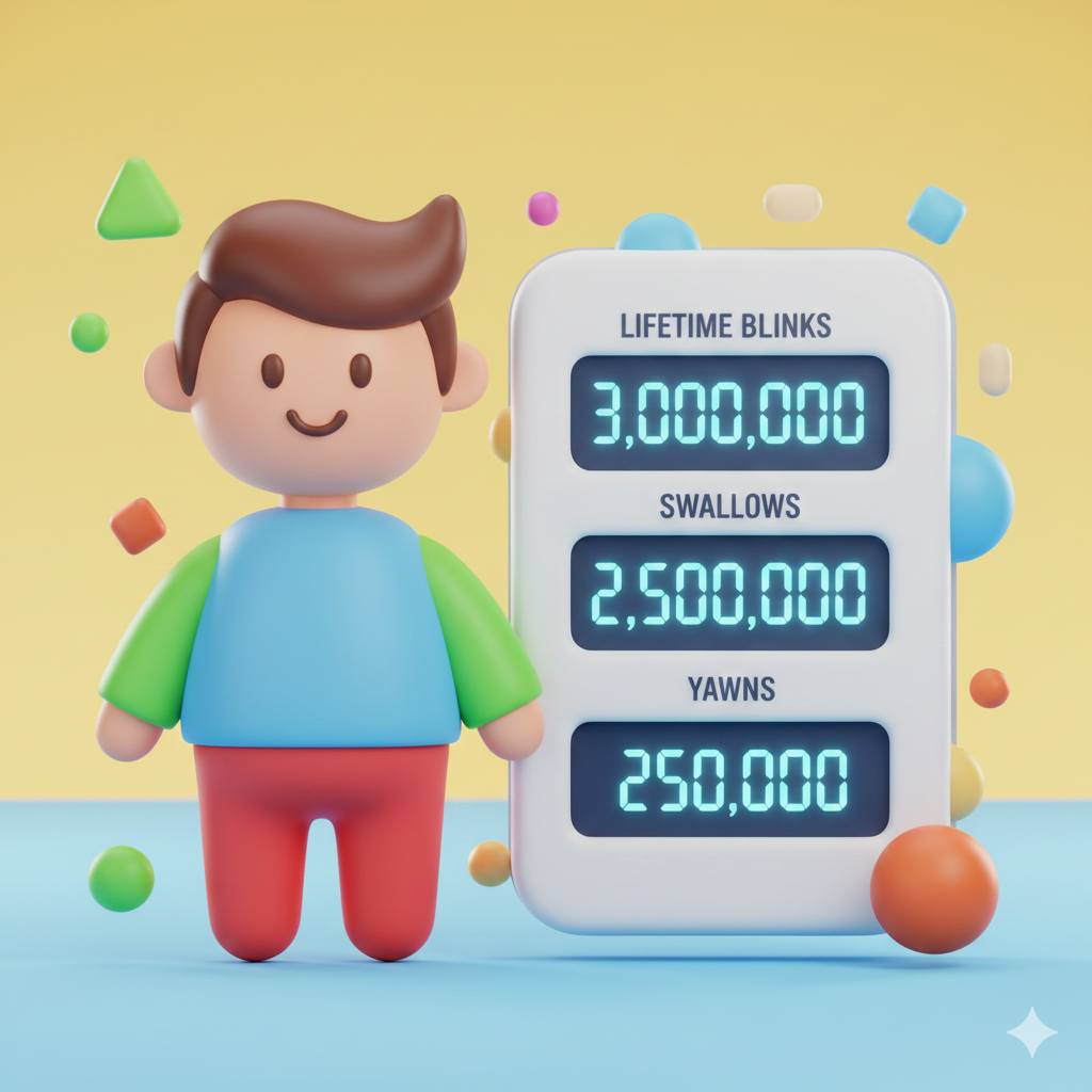 When you add all three actions together the numbers show a surprising truth. Your body spends many years blinking, months swallowing and weeks yawning. These automatic movements rarely get attention yet they shape your life in ways you never notice.