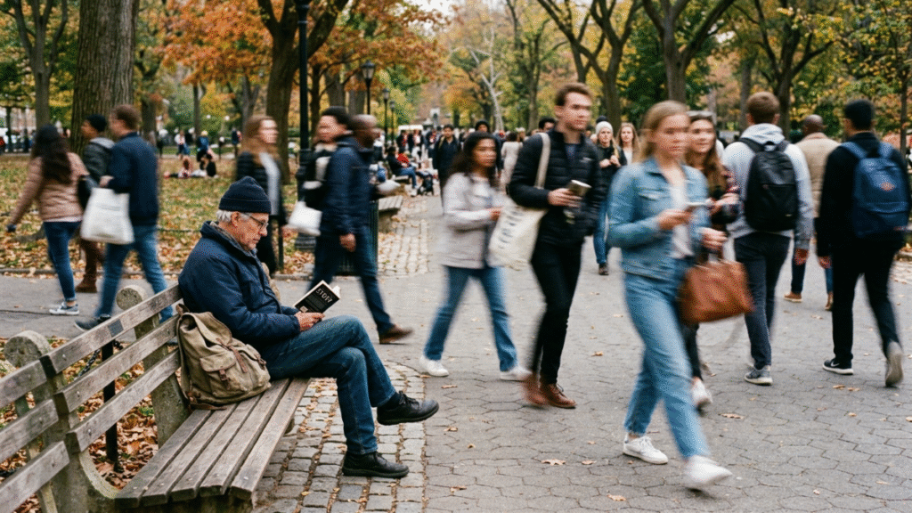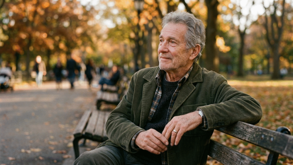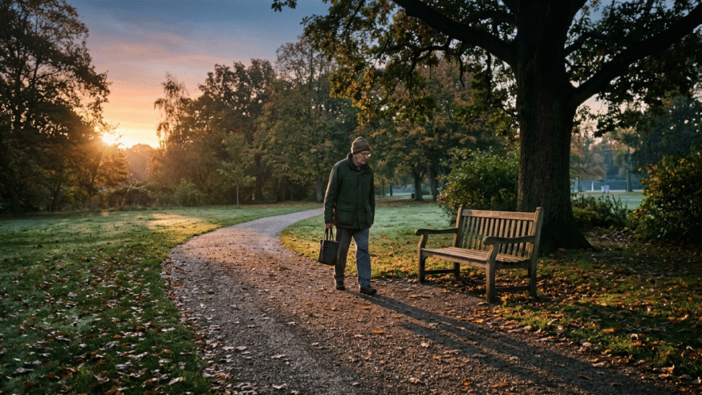 In the morning he used to take a trip to the park with the rise of the sun. He was on the bench of old wood. This bench had an outlook onto a walkway that was passed by many people. When all the other things changed, he was always present.