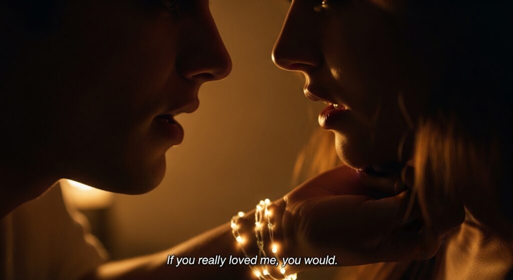 Making your love or commitment base on a given demand would bring emotional manipulation to the debate. This is a phrase which tries to put a lock on the result, and you have to prove that you are really feeling something, and not to have a reasonable and respectful conversation.