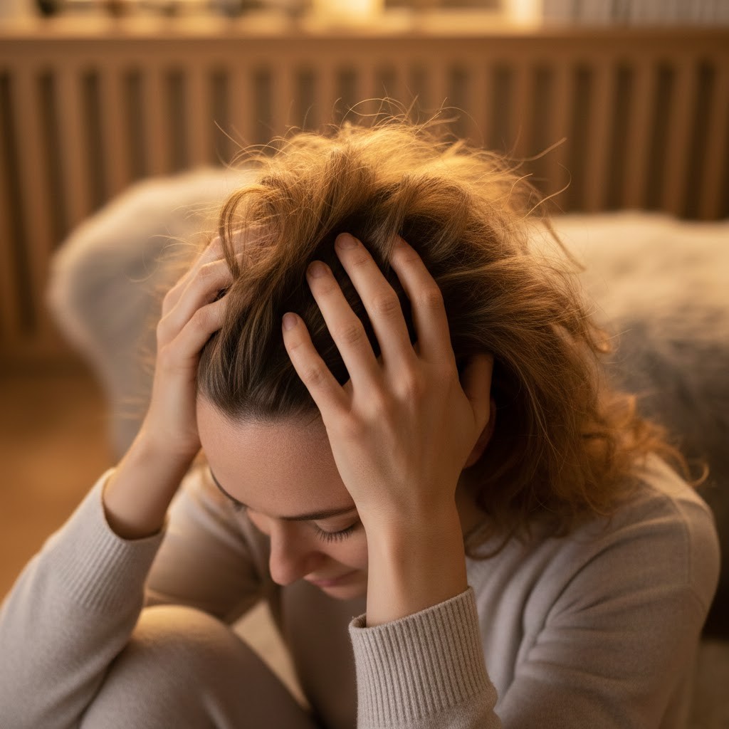 Stress that lasts over a long period turns more hairs into the telogen phase and so, the fall is more apparent later. Little things such as walking for a few minutes, doing deep breathing exercises, writing a diary, or going to bed without screens help the body to calm down. A good number of women realize that their hair loss lessens when their stress levels fall.