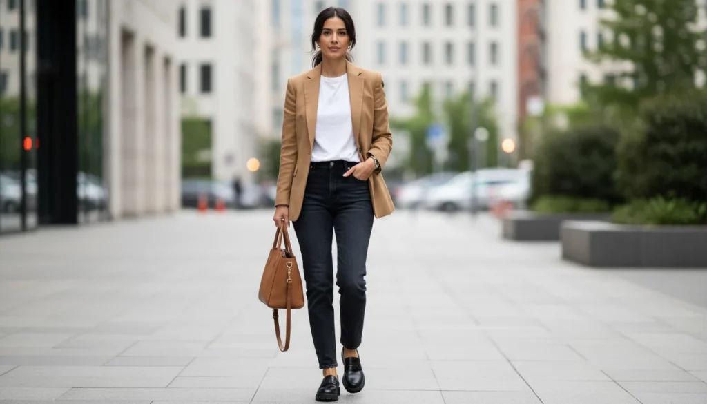 A single-breasted blazer elevates tees, dresses, or jeans for school pickups or client calls. Lightweight linen or wool drapes without bulk. It works for casual weekends as well as workdays.