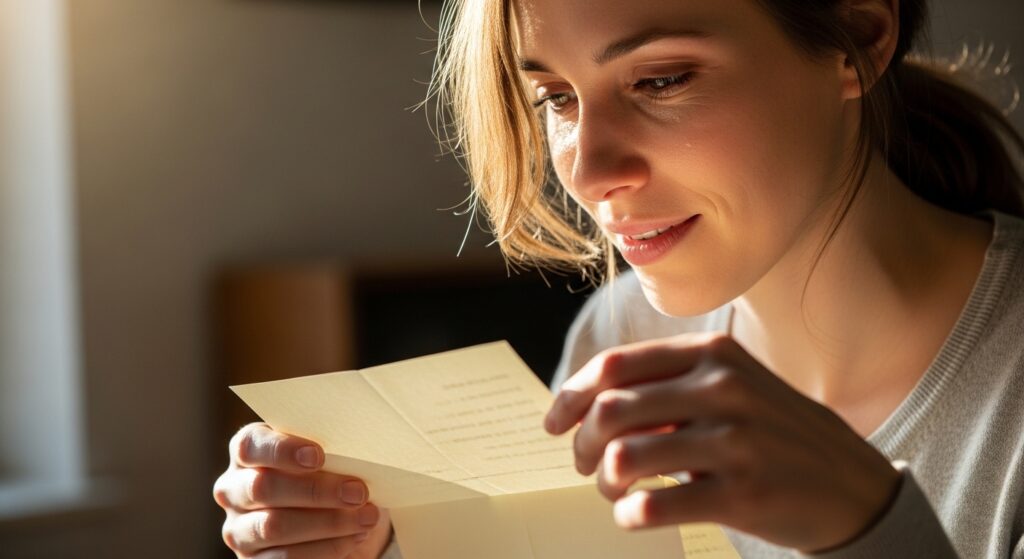 The letter was never charged or overburdened, it rather directed her through thoughts in a calm understanding tone. It enabled her to re-examine her past without being afraid, and it provides insight as opposed to an evaluation.