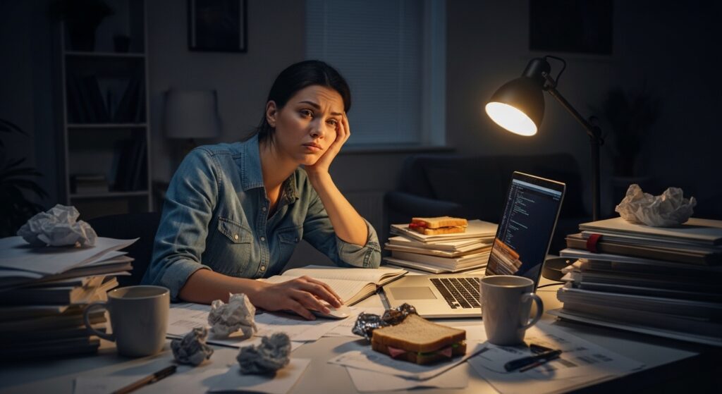 Nevertheless, even with the regular work and planning, outcomes would not cooperate as expected, and her frustration would keep going in a loop and seems to be impossible to stop. The difference between the work and the result was a, reason causing her to doubt her path.