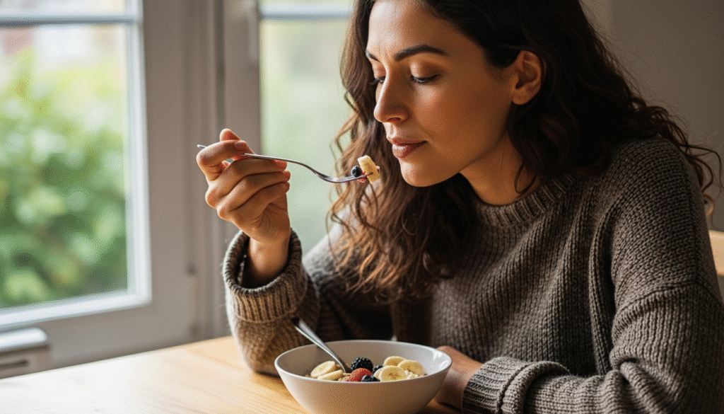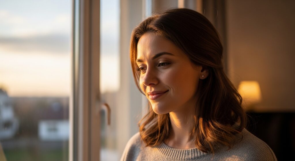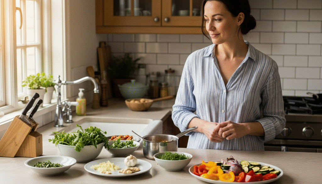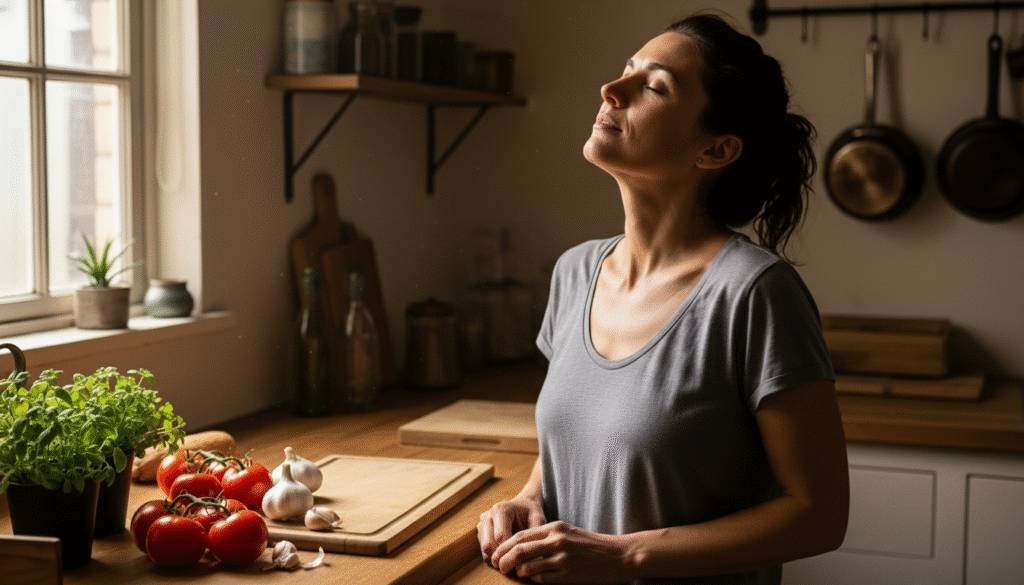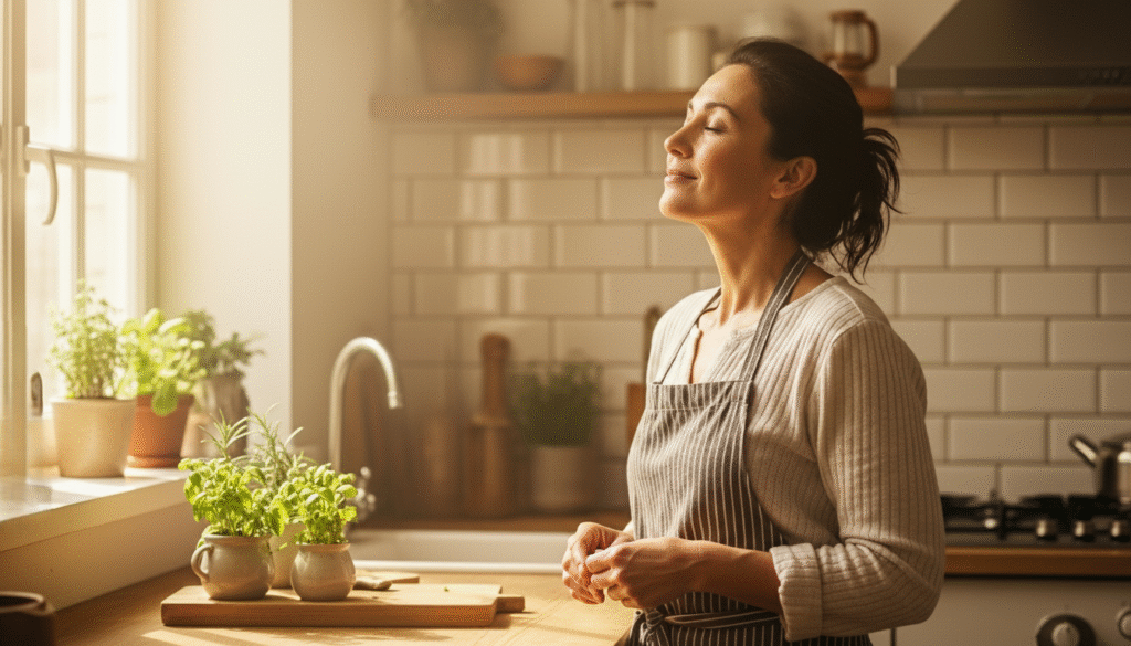 The hard day started with a sigh of relief and a silent feeling of relief and clarity ended, demonstrating to her that even simple activities, such as preparing a health meal, can have surprising comfort and bring one back to balance.