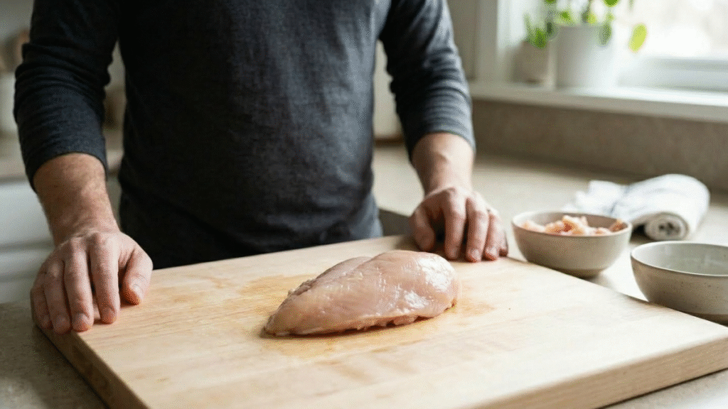 She turned the chicken on a hot pan and let it cook until it was golden and fully cooked, filling the kitchen with a warm smell. She felt a silent satisfaction when she was watching it cook.