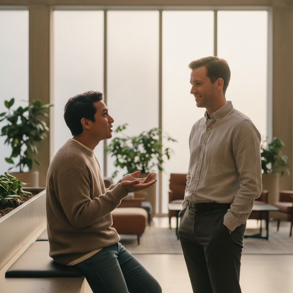 It might be a softer voice, a slight joke or facial expressions indicating a feeling of being deeply in an conversation that is particularly engaging. These changes mostly happen naturally and create a friendly, more intimate environment without much effort.