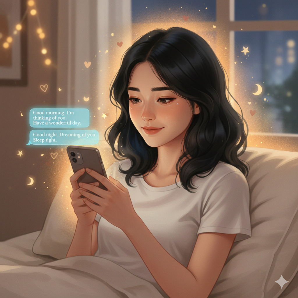 Sending a morning message or an evening message can serve to fill such gaps that arise due to busy schedules or geographic distance. It also puts forth the notion that connection may still be maintained despite the little time.