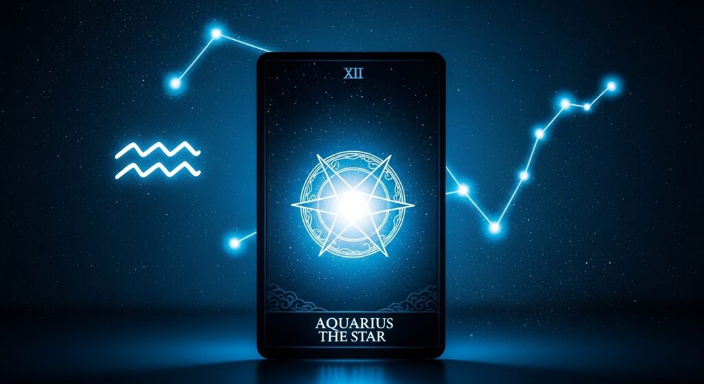 Aquarius is known for visionary thinking, innovation, and humanitarian ideals. The Star tarot card symbolizes hope, inspiration, and belief in a better future. Aquarius individuals often bring fresh perspectives and creative ideas to the world. This tarot connection reflects their role as dreamers and change makers who inspire others through optimism and originality.