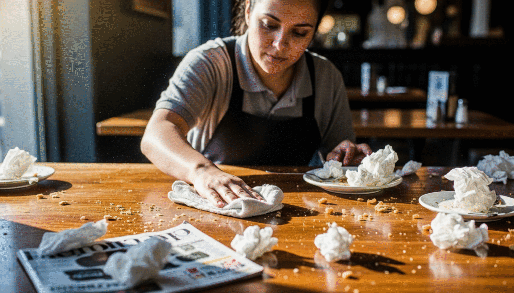 Lack of cleaning up leaves workers with additional work which is time consuming and within the service flow.