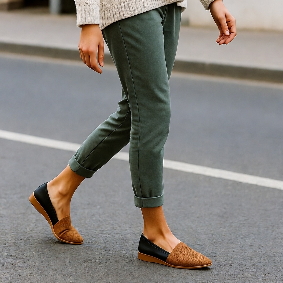 Cigarette shoes and slimness are no longer the norm. Sneakers, relaxed and flats are generally accepted. Comfort has become stylish.