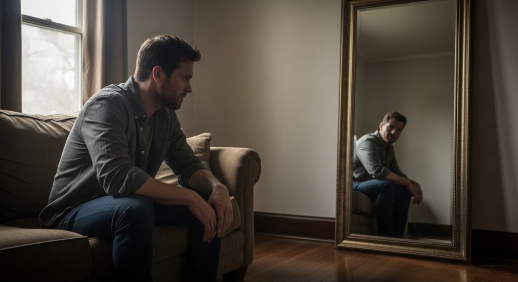 A man believes his value equals his financial capability. The practice of self-affirmation enables individuals to create more stable energy systems through energy stream separation, which allows them to connect with their complete energy potential.