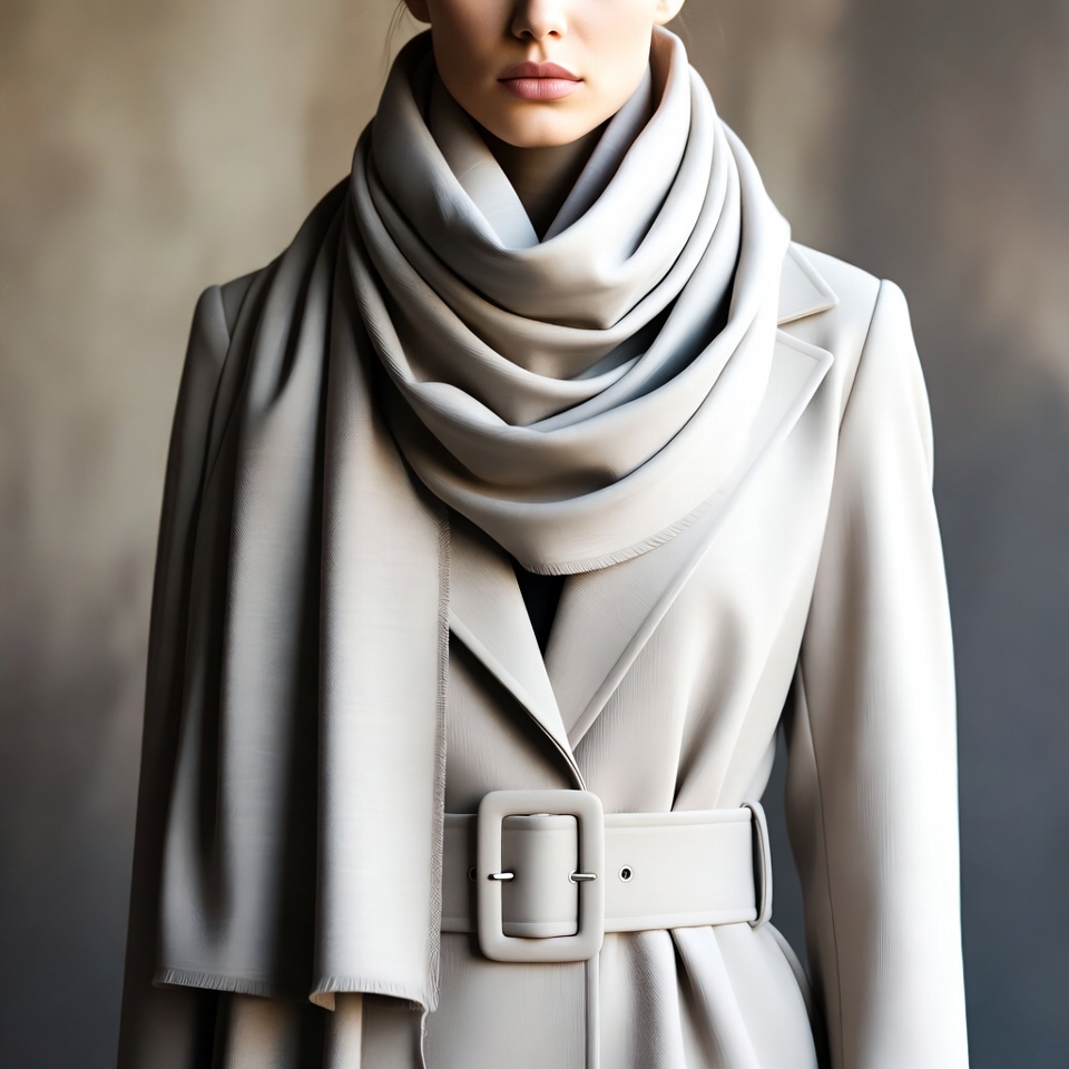 This is achieved by closely matching the scarf color with the coat which makes a well-integrated and elevated look. This style enables texture and fabric qualities to linger and have a calm, sophisticated palette.