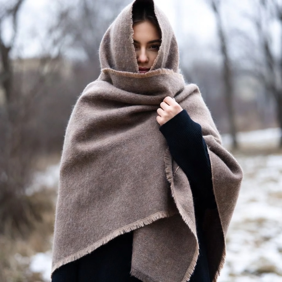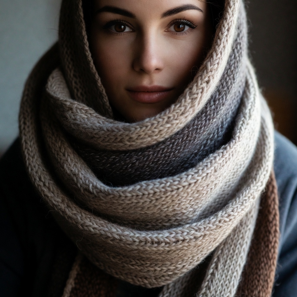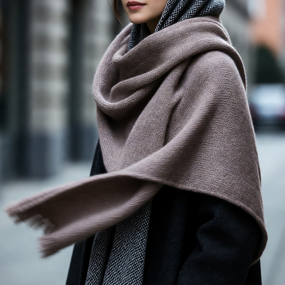 The outer layer is a huge scarf that will give a layer of texture and depth to the winter attire. In a well-thought manner, it substitutes the large accessories and provides both coziness and aesthetics.