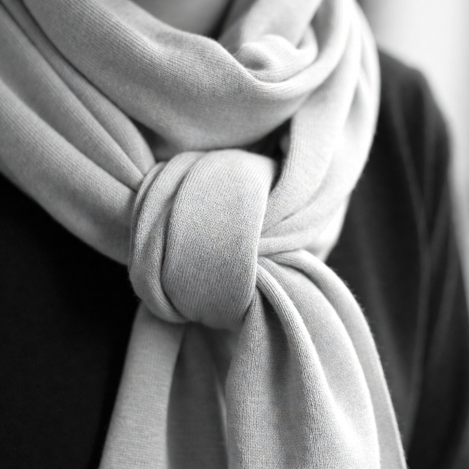 A shorter (scaled against the neck) scarf is warm but does not have a lot of fabric. The choice would fit on lighter winter days and would go well with the fitted jackets or cropped jackets.