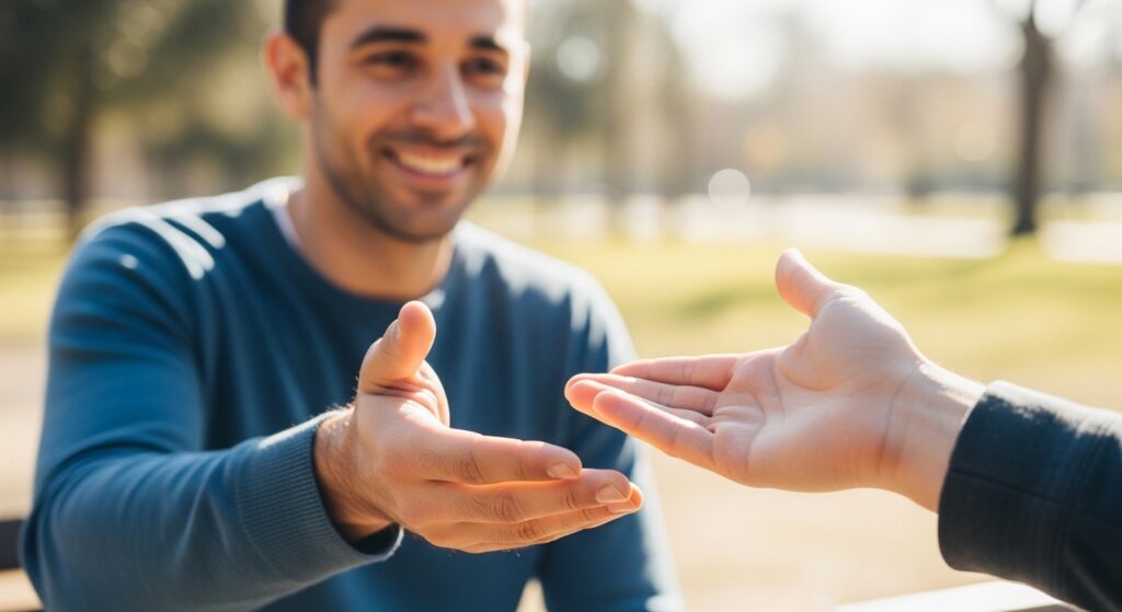 This apparent momentary show of interaction was soon to become something more, as the stranger showed real gratitude. Their discussion showed mutual experiences and views that neither of them had expected to encounter and bonded them because of empathy and understanding.